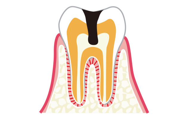 神経が死んでしまった状態。痛みは軽減しますが、虫歯菌が血管を通り心臓病や腎臓病を引き起こすこともあります。